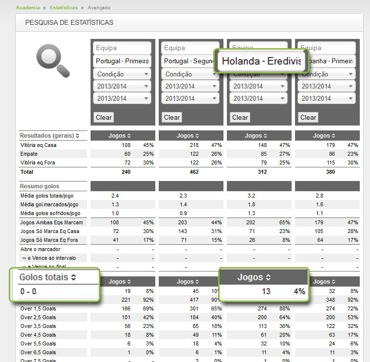 - Link direto para aceder à Pesquisa Avançada de Estatísticas: www.academiadasapostas.com/stats/advanced.