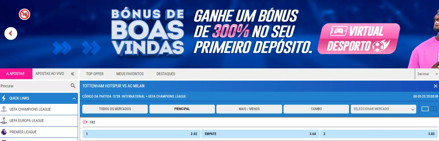 Qualquer aposta com valor esperado negativo deve ser evitada. Se não conheces este conceito, podes ficar a saber tudo na Academia das Apostas.