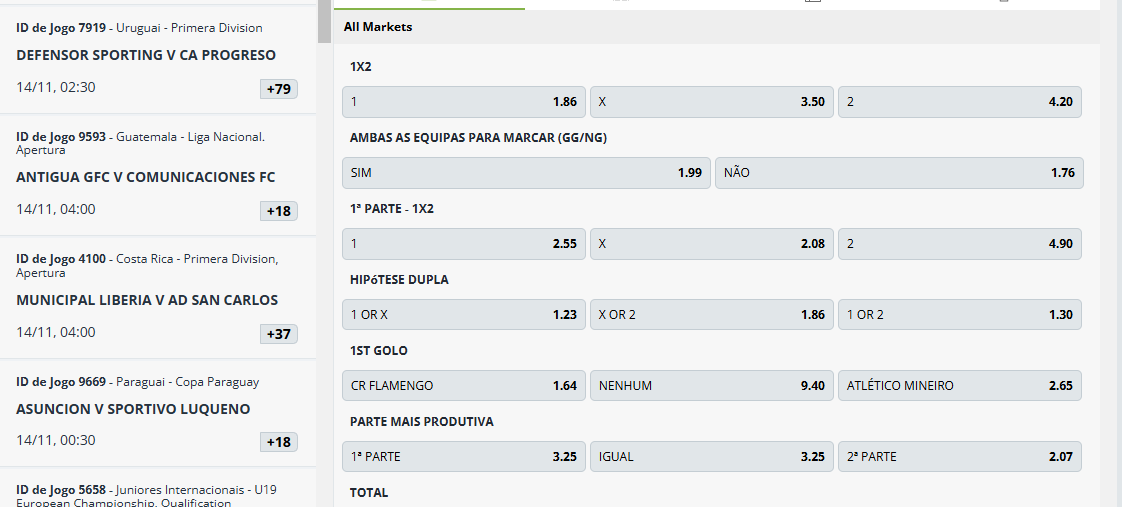 A plataforma oferece mercados como o 1x2, ambos a marcar, total de golos e handicaps nas apostas ao vivo, proporcionando uma ampla gama de opções para cada evento.