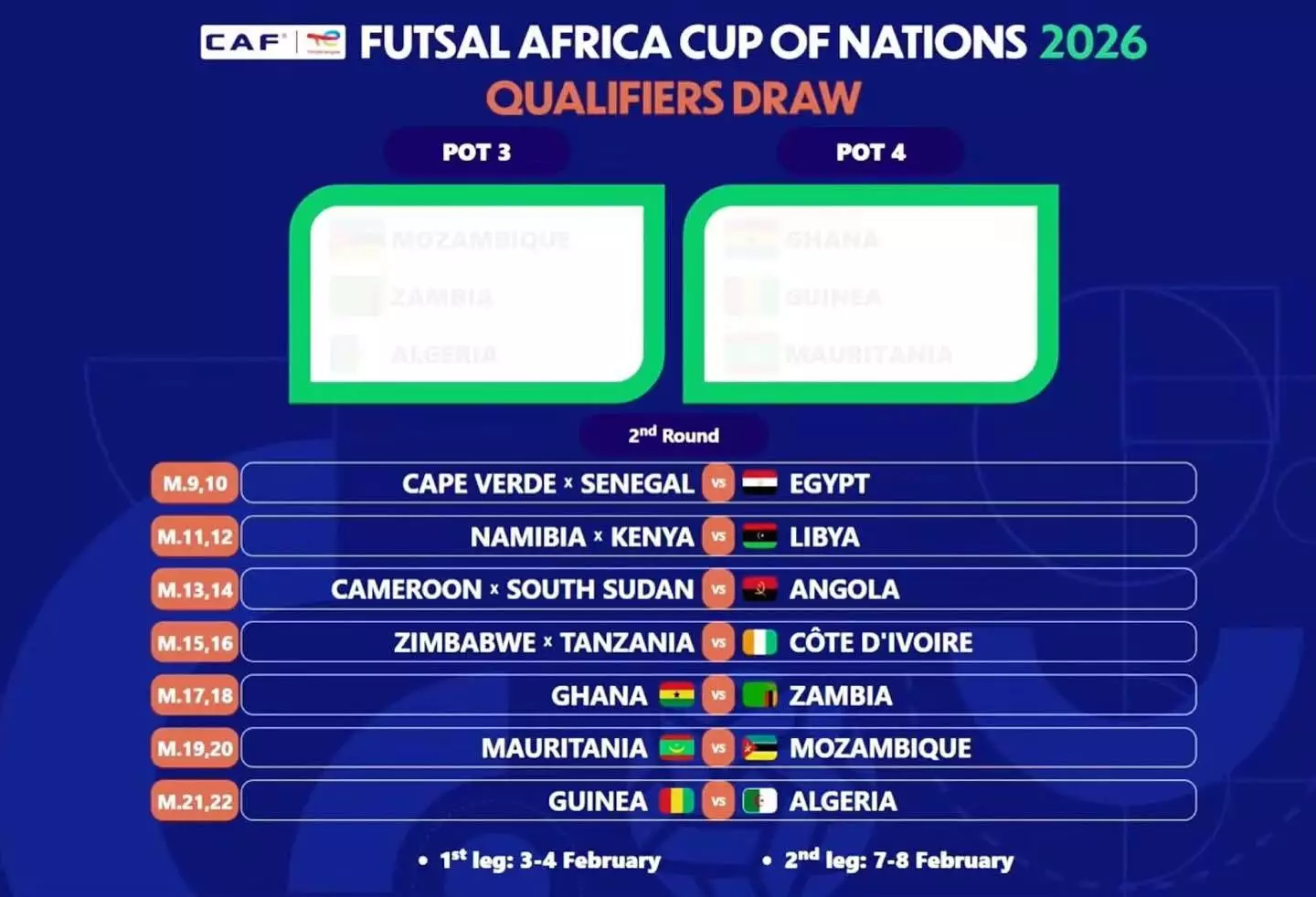 O sorteio da fase decisiva da qualificação para o CAN de Futsal 2026 realizou-se no dia 7 de Janeiro, em Rabat, Marrocos, sob organização da Confederação Africana de Futebol (CAF).
